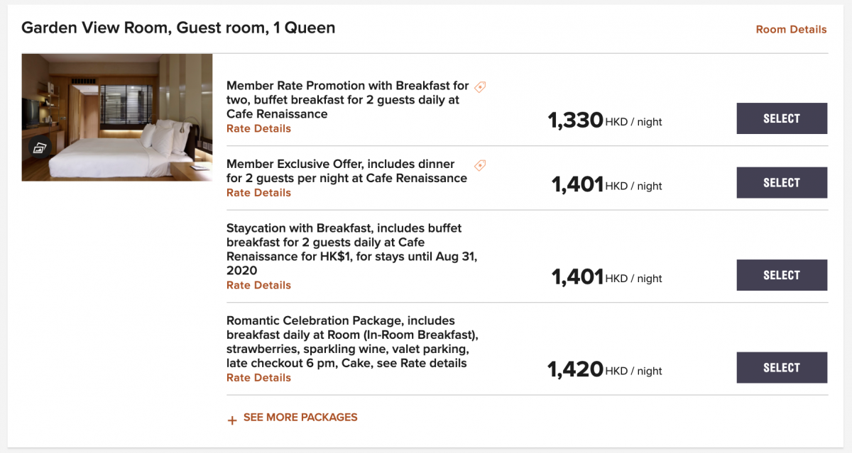 今次優惠香港區全部Marriott旗下酒店都有參與,以下提供各間酒店嘅包晚餐價錢比大家參考。